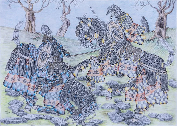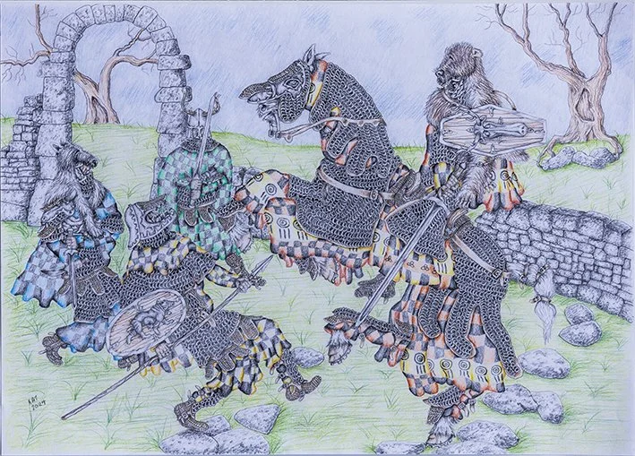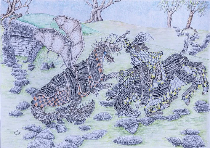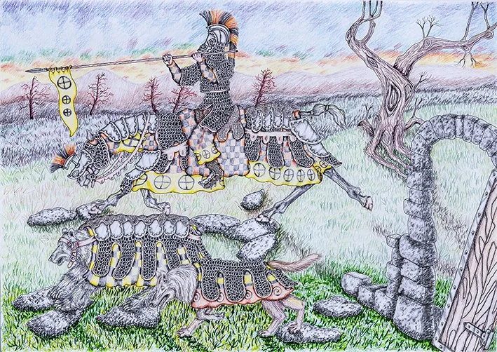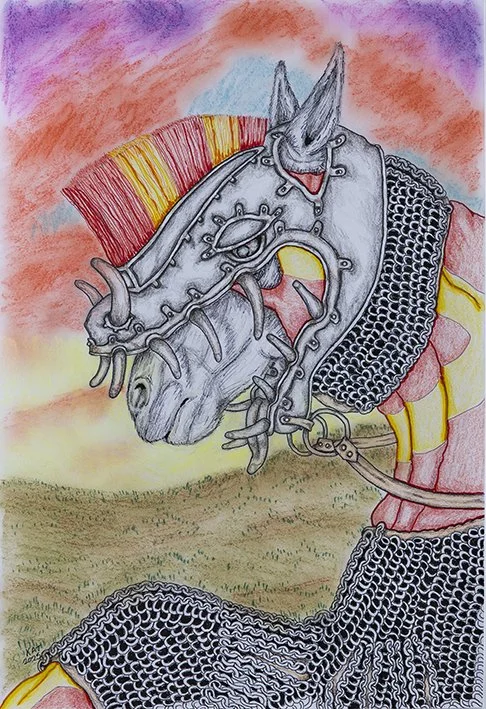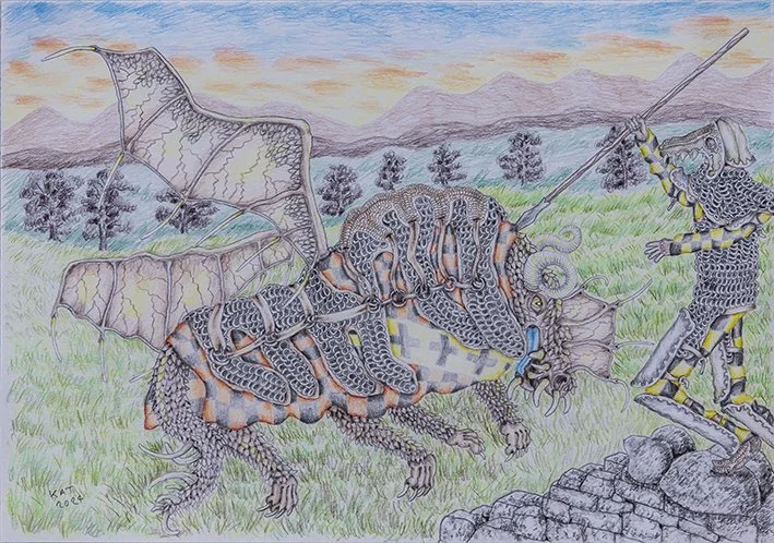 The Stagon, a winged insect like dragon, dressed in chainmail and trained to attack.